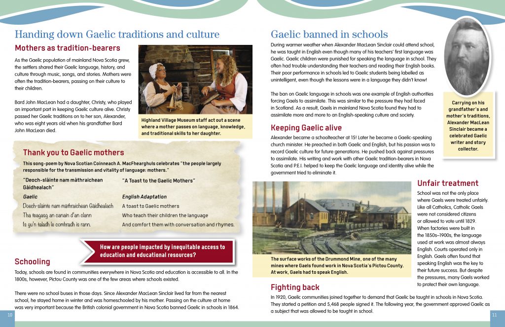 A kit of eight artefacts and a resource guide book complementing the series is also available. The artefacts connect to the historical experiences of the Mi’kmaq, Acadians, Black Nova Scotians and the Gaels during the 1820-1920 period.